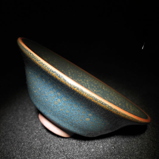 Pure handmade glazed tears Jianzhan teacup thousand miles of Jiangshan picture Jianyang iron tire teacup master cup kiln change gold silk blue peacock
